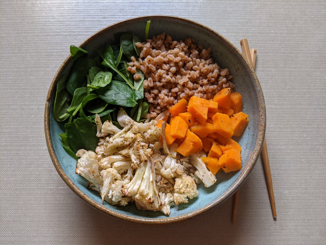 Home Made Buddha Bowl: Farro, Cauliflower, Spinach, and Sweet Potatoes January 24, 2021 Previous Southwestern Quinoa Salad Newer Messy Breakfast Burrito You May Also Like Fresh Bread with Garden Salad and Cheese February 21, 2021 Roasted Sweet Potatoes, Broccoli, and Peas with Sesame Sauce July 5, 2020 Southwestern Quinoa Corn Black Bean Salad; Curried Mixed Grains with Carrots and Dried Fruit; Boiled Eggs July 5, 2021