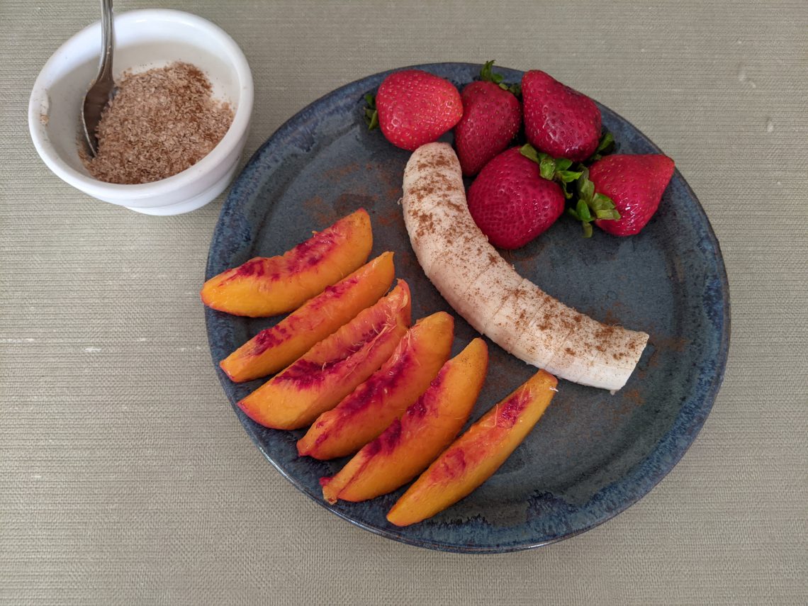 Home Made Peach Strawberry Banana Plate with Yogurt Cup August 19, 2021 Previous Taco Salad Newer Pinto Bean Veggie Burger Sandwich with Spicy Vegetables and Lime Yogurt Sauce You May Also Like Brown Rice Cakes and Guacamole with Fresh Veggies March 20, 2021 Roasted Red Pepper Cheddar Herb Toasted Sandwich April 29, 2021 Farro Pesto Salad July 5, 2020
